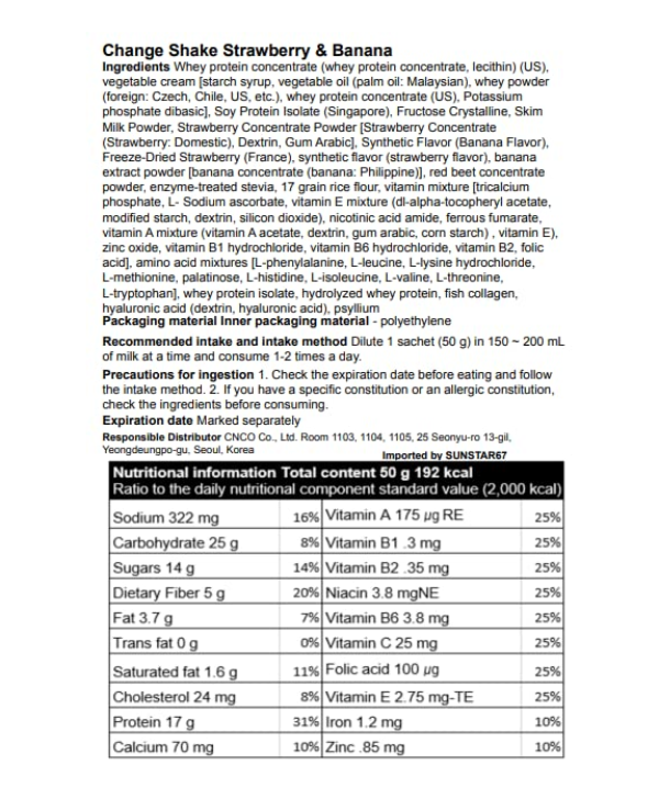 Change Fit Protein Shakes SB , Change Fit 프로틴쉐이크 딸기&바나나 , 50g