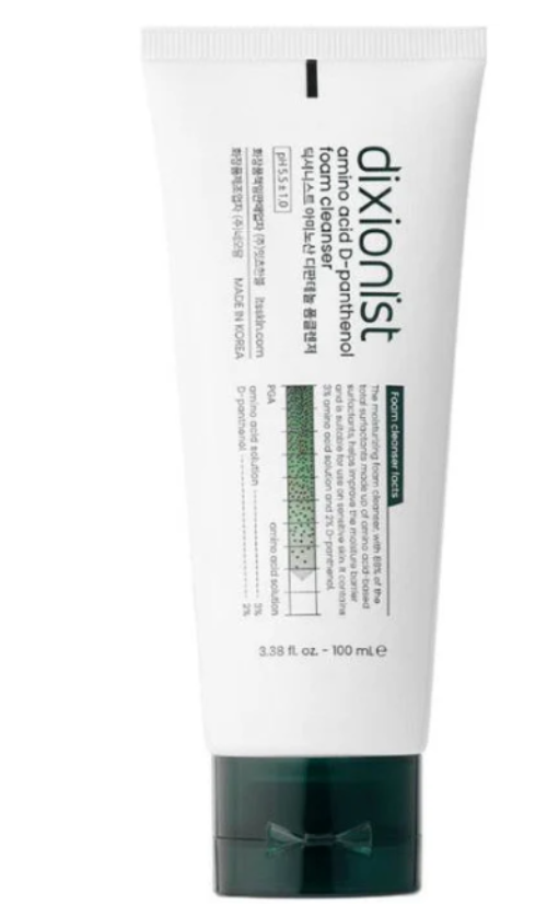based on similar products from the Dixionist line, such as the Dixionist Amino Acid Cream, the ingredients may include: Water, Caprylic/Capric Triglyceride, Glycerin, Pentylene Glycol, Niacinamide, Bacillus Ferment, Panthenol, 1,2-Hexanediol, Butyrospermum Parkii (Shea) Butter, Cocos Nucifera (Coconut) Oil, Ceramide NP, Arginine, Squalane, Polyglutamic Acid, Hydrolyzed Pea Protein, Ficus Carica (Fig) Fruit Extract, Centella Asiatica Extract, Hydrogenated Lecithin, Polyglyceryl-2 Stearate, Triethylhexanoin, Glyceryl Stearate, Sodium Carbomer, Stearyl Alcohol, Carbomer, Cetearyl Alcohol, Phospholipids, Hydrogenated Polydecene, Cholesterol, Phytosphingosine, Xanthan Gum, Butylene Glycol, Phytosterols, Caprylyl Glycol. Please note that this is not the exact list for the cleanser, and I recommend checking the product packaging or contacting the manufacturer for the precise ingredients.