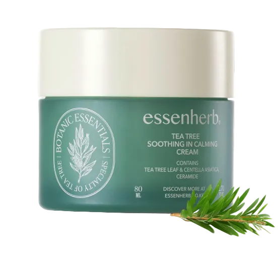 에센허브 티트리 수딩 인 카밍 크림 (80ml)은 민감하고 예민해진 피부를 빠르게 진정시키는데 특화된 비건 인증 수분 크림입니다.