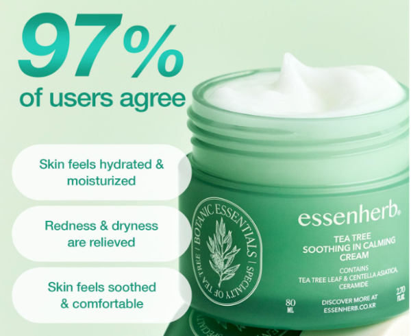 The product you are looking for is the Essenherb Tea Tree Soothing & Calming Cream 80ml. It is a popular Korean skincare item known for its soothing properties for sensitive and acne-prone skin.