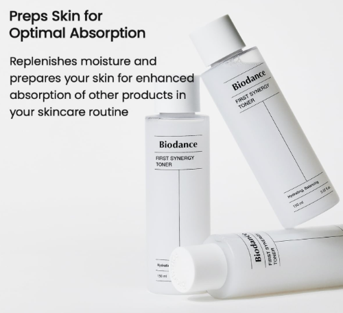 Biodance First Synergy Toner (150ml) is a high-concentration boosting toner designed to open the skin's moisture pathways and restore balance immediately after cleansing