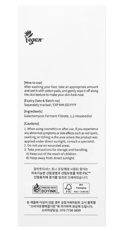 - ey Ingredient: Formulated with 100% Galactomyces Ferment Filtrate, a natural ferment rich in vitamins, amino acids, and minerals.