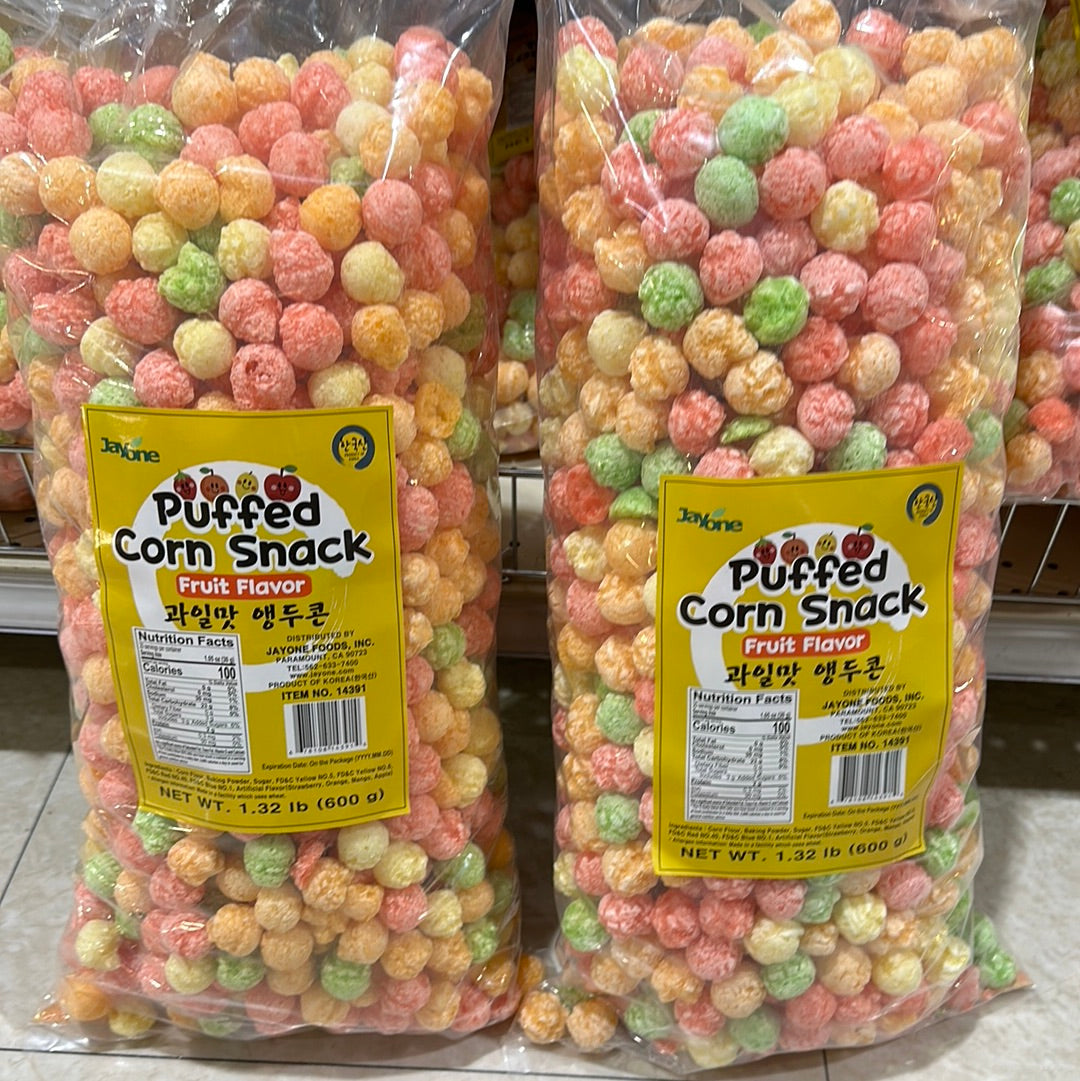JAYONE PUFFED CORN SNACK 600g , 자연나라 과일맛 앵두콘 , 600g