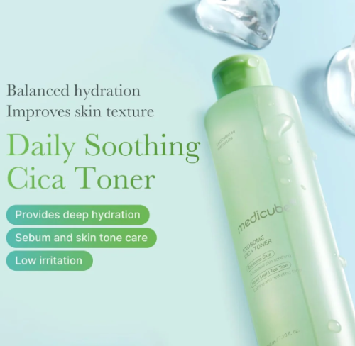 메디큐브의 엑소좀 시카 토너(210ml)는 민감해진 피부를 빠르게 진정시키고 모피공 및 피지 관리에 특화된 저자극 토너입니다.