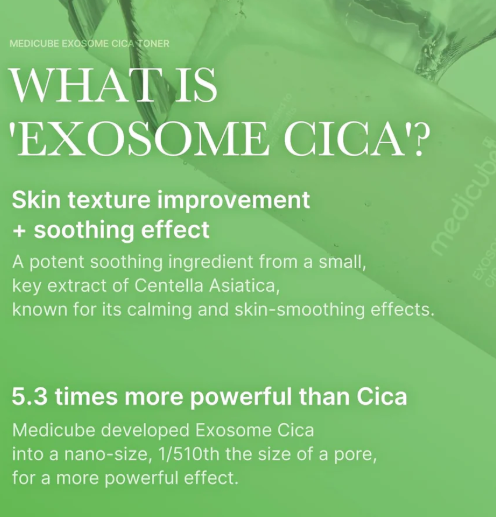 - Advanced Soothing: Formulated with Exosome Cica, which is developed in a nano-size 1/510th the size of a pore. This allows it to deliver active ingredients more effectively, providing 5.3 times more powerful soothing than traditional Cica.