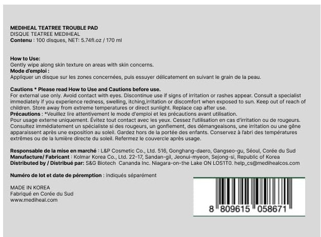 Official Name: Mediheal Teatree Trouble Pad