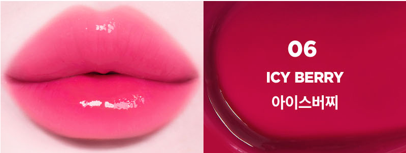 색상 (06 아이시버찌): 겨울 쿨톤에게 특히 추천되는 고채도의 오키드 핑크 컬러입니다. 입술에 발랐을 때 독특하고 화사한 매력을 연출해 줍니다.