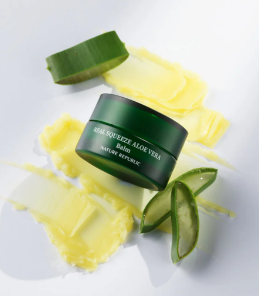 네이처리퍼블릭(Nature Republic)의 리얼 스퀴즈 알로에 베라 밤은 캘리포니아산 알로에 성분을 함유하여 건조하고 민감한 부위에 즉각적인 보습과 진정을 제공하는 멀티 밤입니다.
