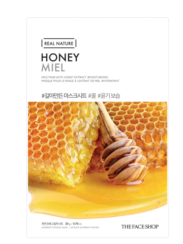 The The Face Shop Real Nature Honey Face Mask is a popular Korean skincare sheet mask designed to provide intense moisture and a radiant glow to dry and dull skin. It is enriched with honey extract and other natural ingredients.