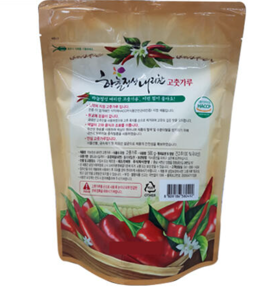 원재료 및 함량: 100% 국내산 고추를 사용하여 이물질 없이 깨끗하게 가공되었습니다.