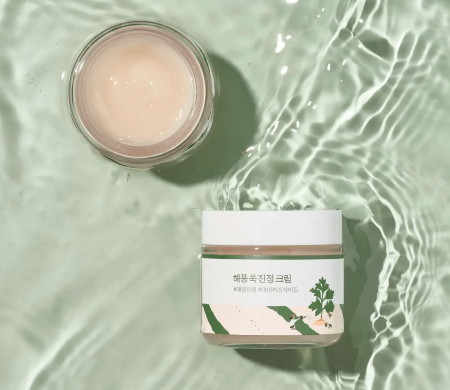 라운드랩(ROUND LAB)의 해풍 쑥 진정 크림(80ml)은 거문도의 쑥 추출물을 활용하여 민감해진 피부를 진정시키고 수분을 공급하는 저자극 보습제입니다