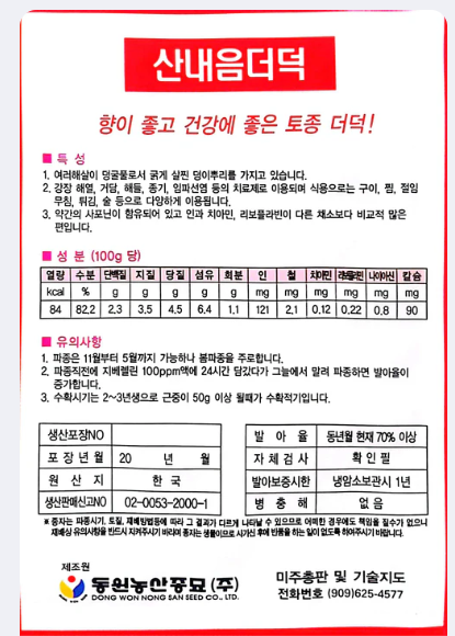 Seed Korean 1pk,산내음 더덕 1팩
