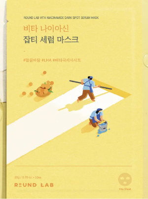 비타 나이아신아마이드 잡티 집중 세럼 마스크'는 주로 라운드랩(ROUND LAB) 브랜드의 제품으로 알려져 있으며, 칙칙한 피부 톤과 잡티를 집중적으로 관리하는 미백 기능성 마스크 팩입니다.