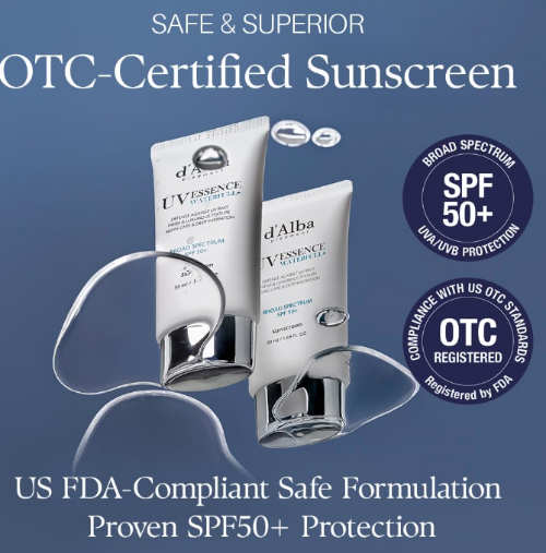 달바(d'Alba)의 워터풀 에센스 선크림(50ml)은 수분 에센스처럼 촉촉하고 가벼운 제형으로 유명한 저자극 비건 선크림입니다